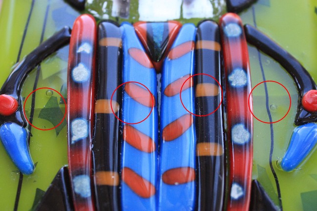 So, do you think that there is an issue with too many colors? could it be the fault of air bubbles in the base layer? How would you change the firing schedule?