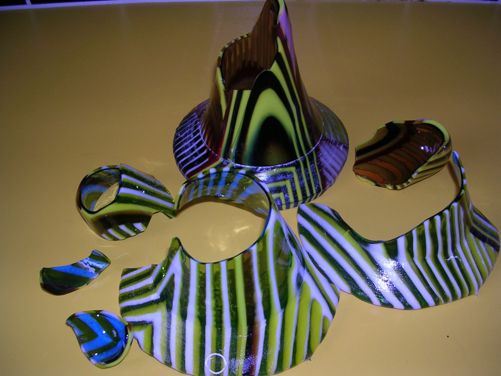 Hi all ,,Would anyone care to tell me what i am doing wrong. Am using spectrum 96 glass, the blanks were 14 cm wide and 7 mm thick. The first one i tried to slump through a drop ring popped after a few hours after coming out of the kiln the 2nd was in bits when i opened the kiln next morning