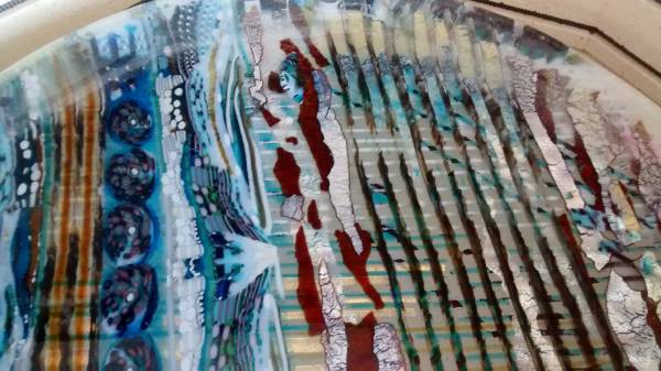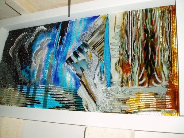 I have been playing a lot with the new Alchemy glass and am really enjoying the different reactions one can get and when deep slump, the silver is stretched and torn and gives some really interesting affects