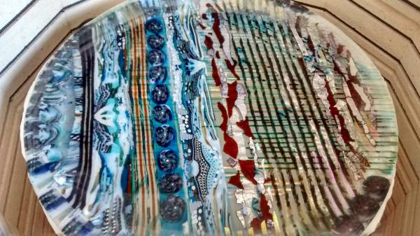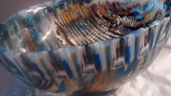 Still playing with silver foils and alchemy and French vanilla ! oh so fun. I might slump shallow this time for broader affect. Good to have a show with all shapes and sizes . My goal is 12 large vessel forms but will even try for 20. Hmm :-k