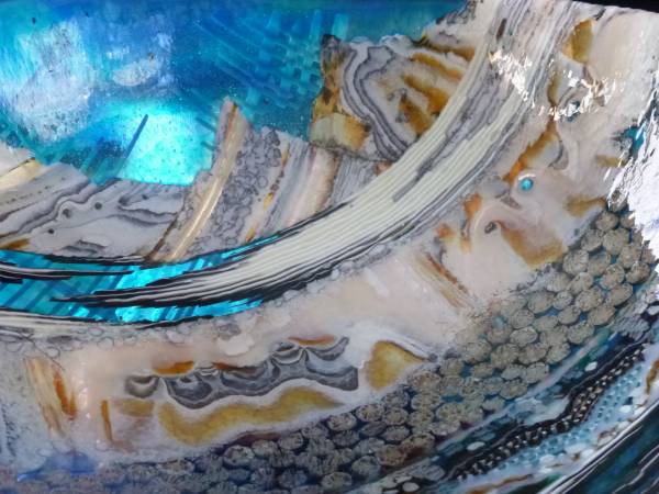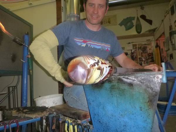 Hi Tony! yes. On my face book page. I will try to post that for you. AND Marty! yes I did cover the large piece in clear. Cast it with 1/2 inch clear all the way around it. BUT the furnace glass is just so nice and the blowers like to gather much better so they feel more comfortable about how thick the piece actually is while blowing it out. But it was really fun. Bavin Glassworks is a wonderful studio and Ryan is truly good at what he does. The bullseye colours were fighting each other and it tended to collapse in spots but he was able to rescue. I will post some other pics tooo ! Les