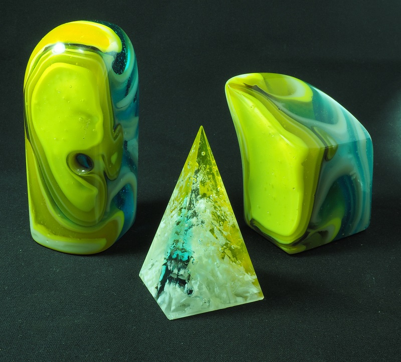 I used these two little projects to trial new mould set up to make these and bubble blocks. Happy that there is no shifting of the walls to allow leakage and that extraction of the fresh block of glass is a joy. Have been distracted with work using float for souvenir panels but am looking forward to using the new mould for bubble blocks toward making a three to four totem for a Whitsundays exhibition in August. peace, haydo